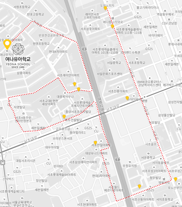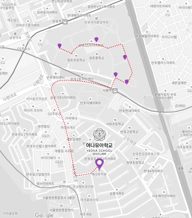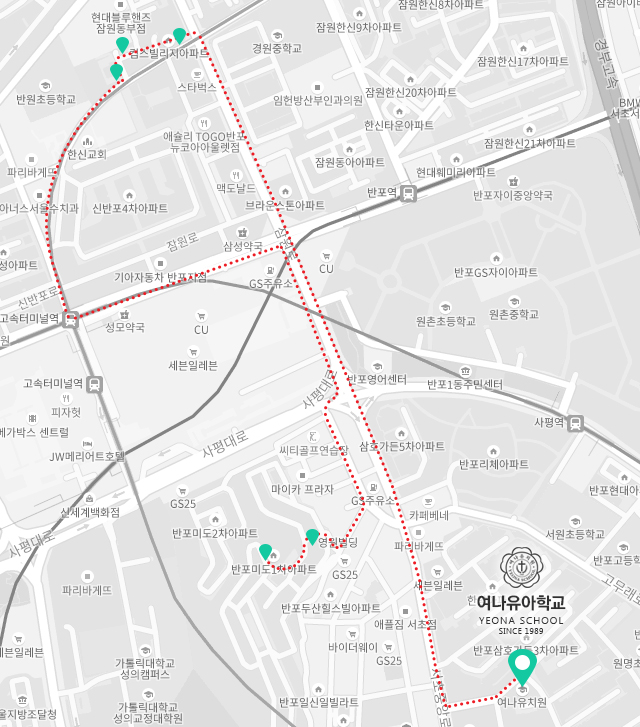 반포자이@ 학원버스정류장 1관할구역 > 반포자이@ 학원버스정류장 3관할구역 > 서초래미안 111동 옆 > 현대4차@ 201동 > 서원초등학교 앞